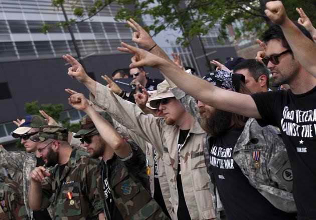 Decenas de veteranos, vestidos con sus uniformes o con camisetas de IVAW