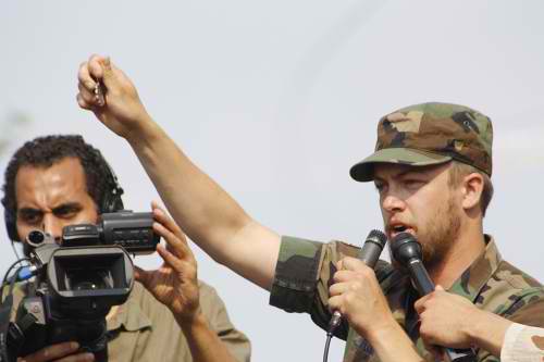 En la conferecia de prensa para apoyar la acción contra la OTAN, Samira