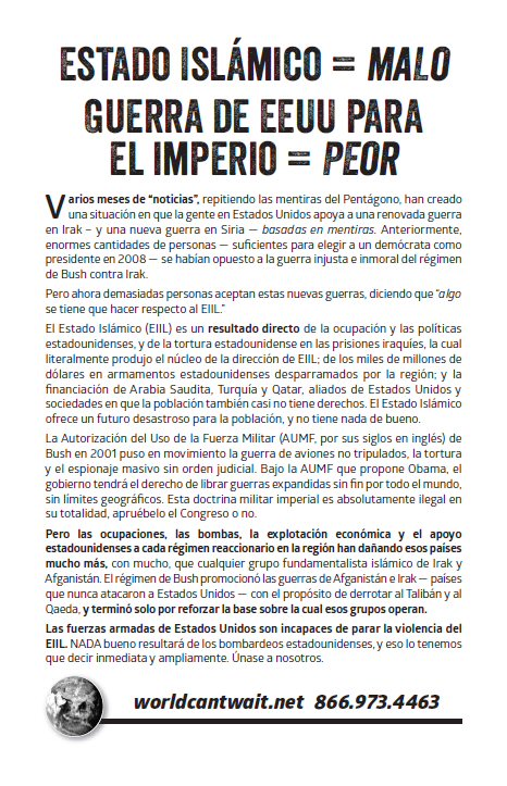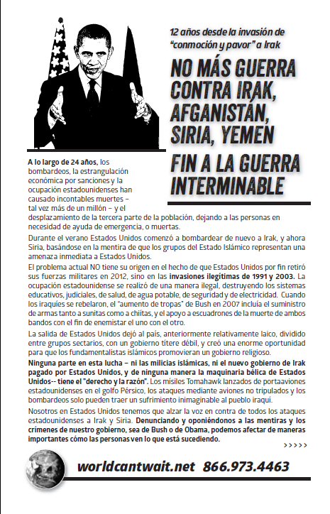 Nosotros en Estados Unidos tenemos que alzar la voz en contra de todos los ataques estadounidenses a Irak y Siria. Denunciando