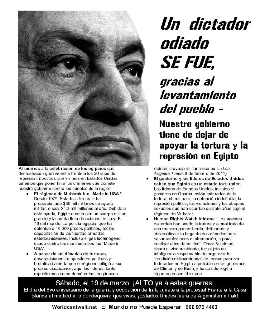 Mubarak: ¡Gracias, EUA! ¡No podría hacer esto