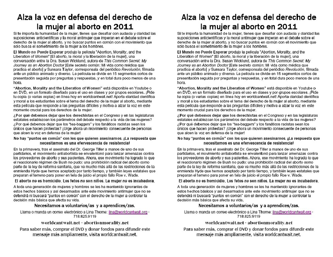 Alza la voz en defensa del derecho de la mujer al aborto en 2011
