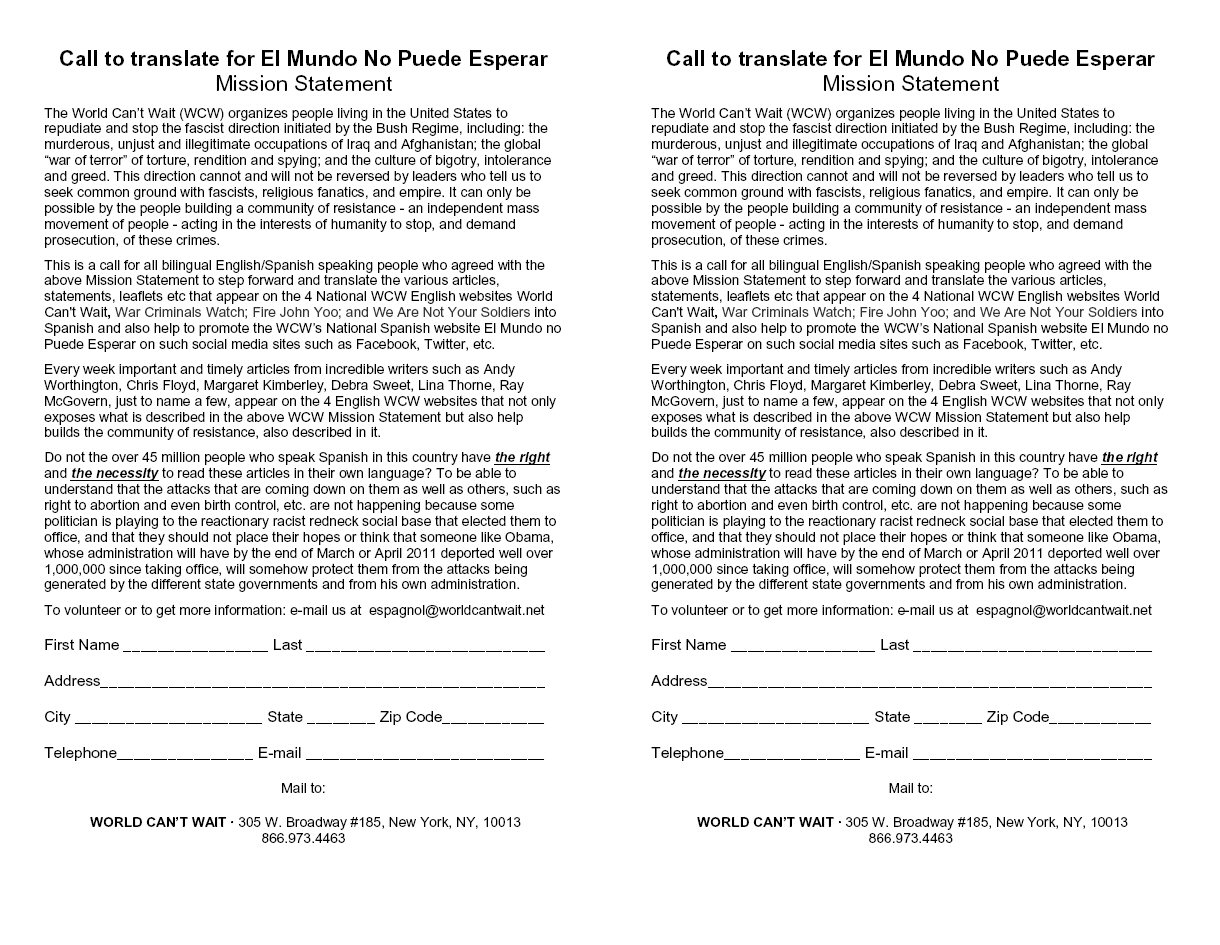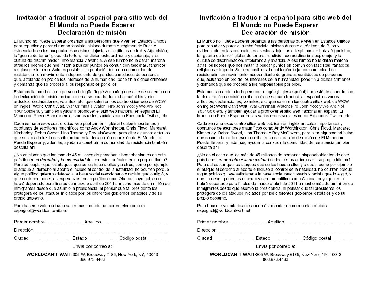 manda un correo electrónico a espagnol@worldcantwait.net y escribe "voluntario