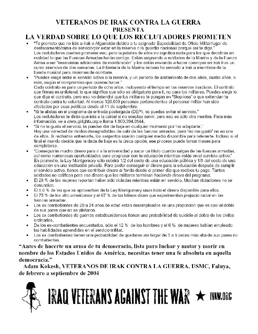 manda un correo electrónico a espagnol@worldcantwait.net y escribe "voluntario