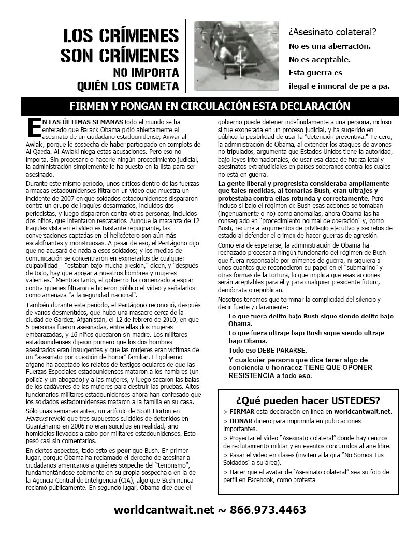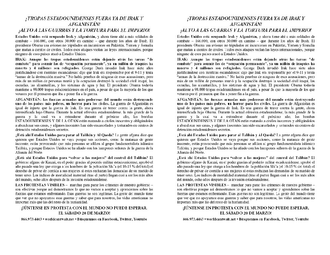 Volante sobre Protestas contra a la intensificación de la guerra Afganistán de parte de Obama