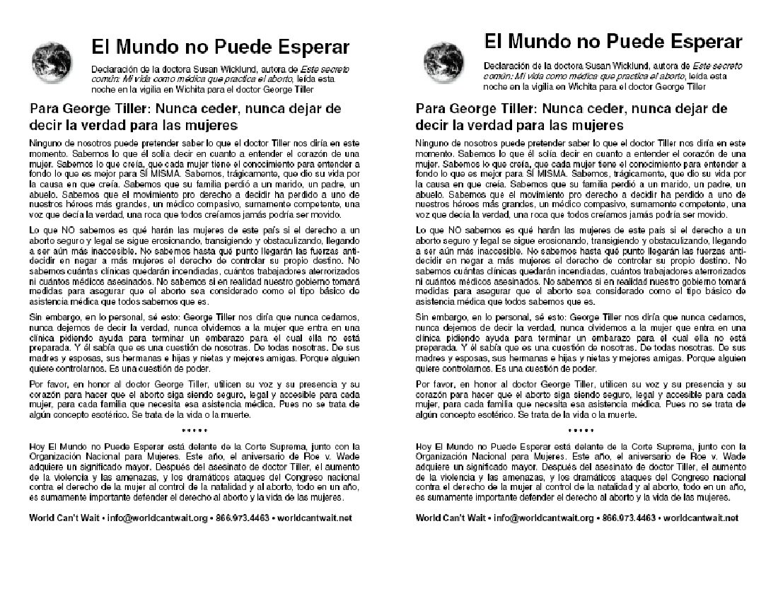 leída esta noche en la vigilia en Wichita para el doctor George Tiller.