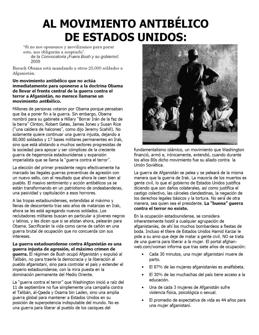 AL MOVIMIENTO ANTIBÉLICO DE ESTADOS UNIDOS: