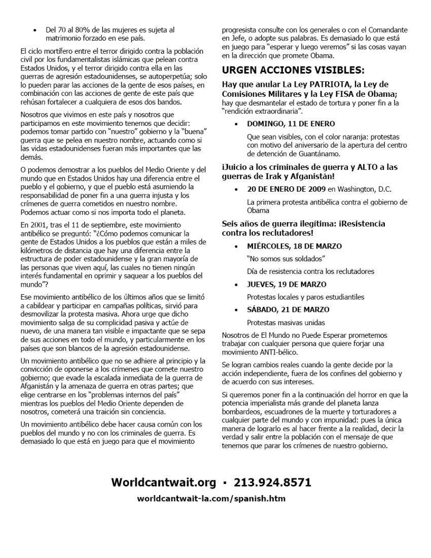 manda un correo electrónico a espagnol@worldcantwait.net y escribe "voluntario