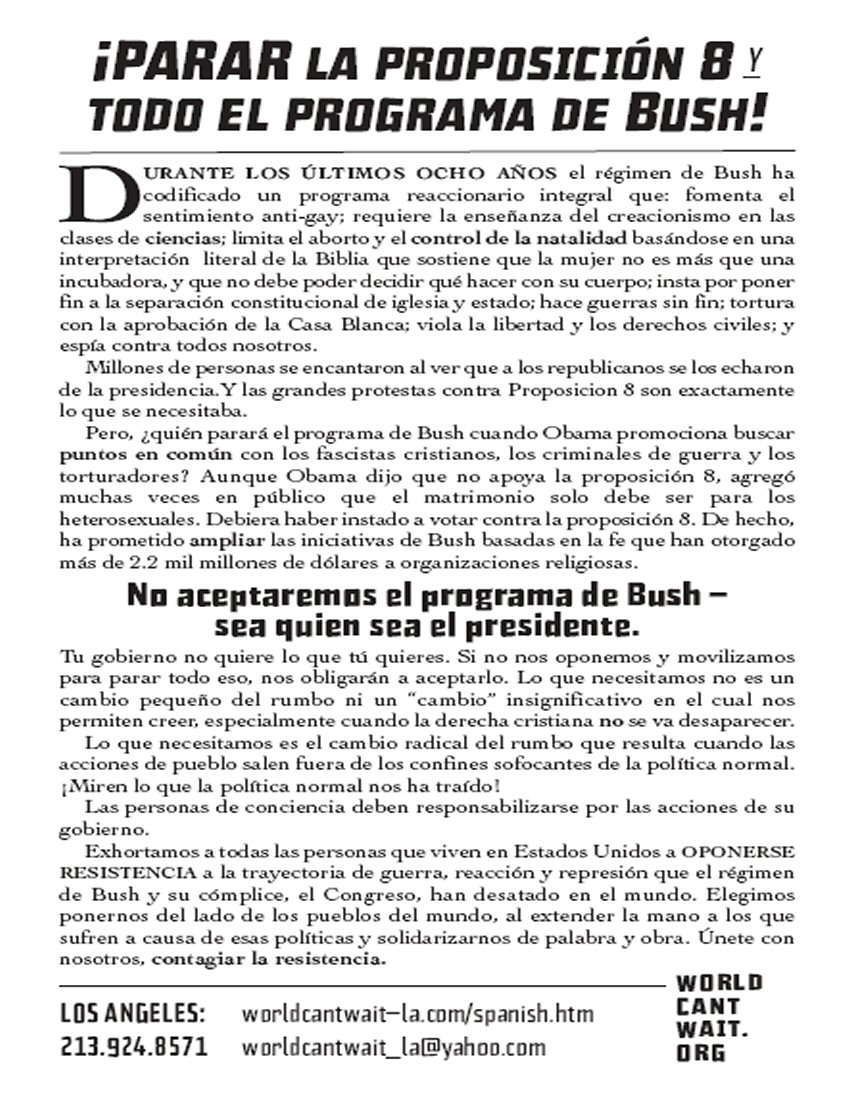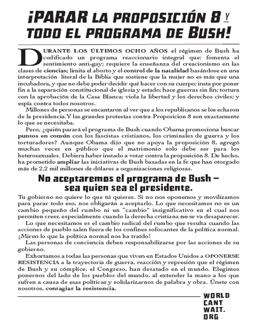 ¡PARAR la proposición 8 y todo el programa de Bush!