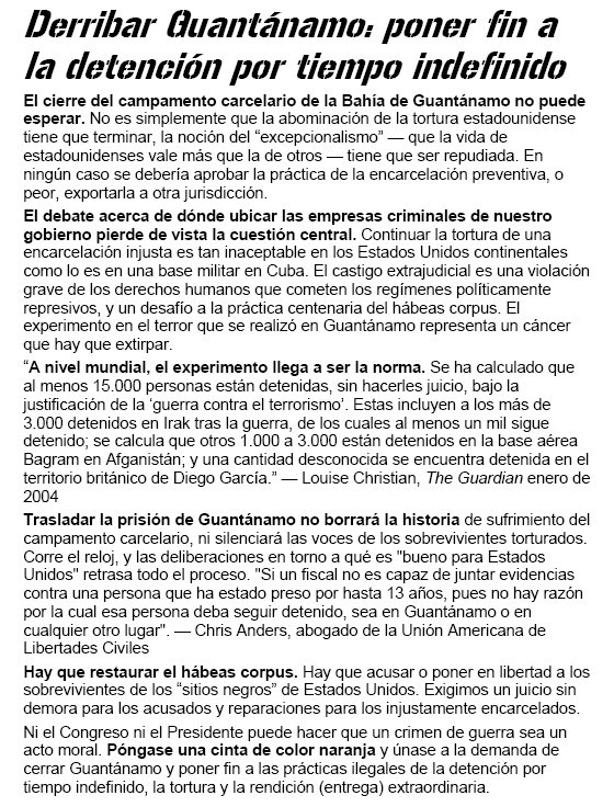 Enero de 2016: ¡Cerrar Guantánamo ya!