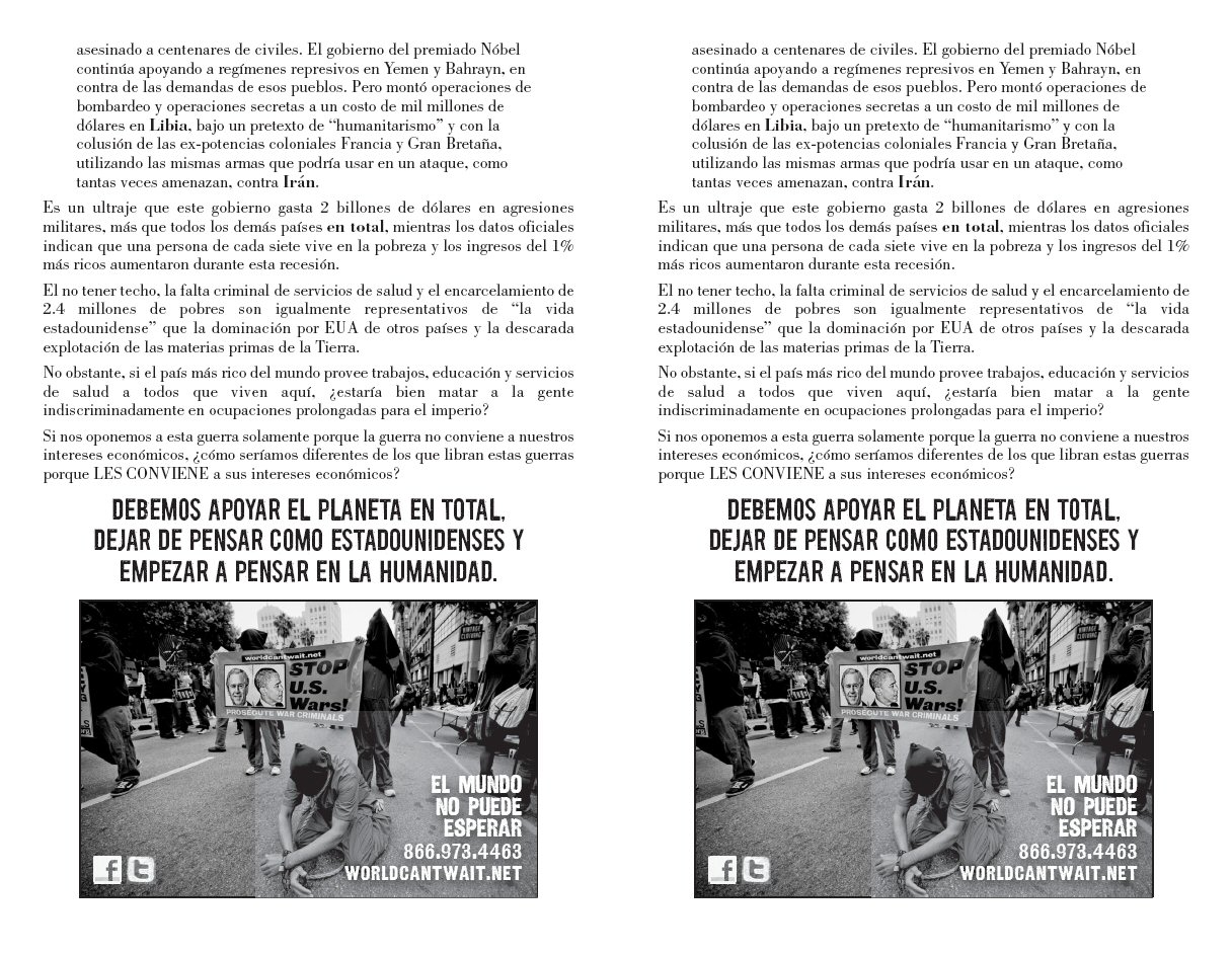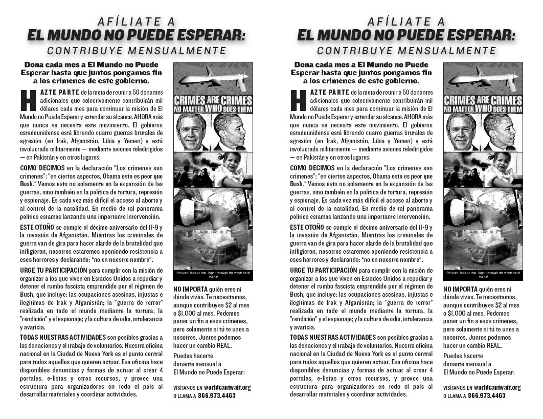 manda un correo electrónico a espagnol@worldcantwait.net y escribe "voluntario
