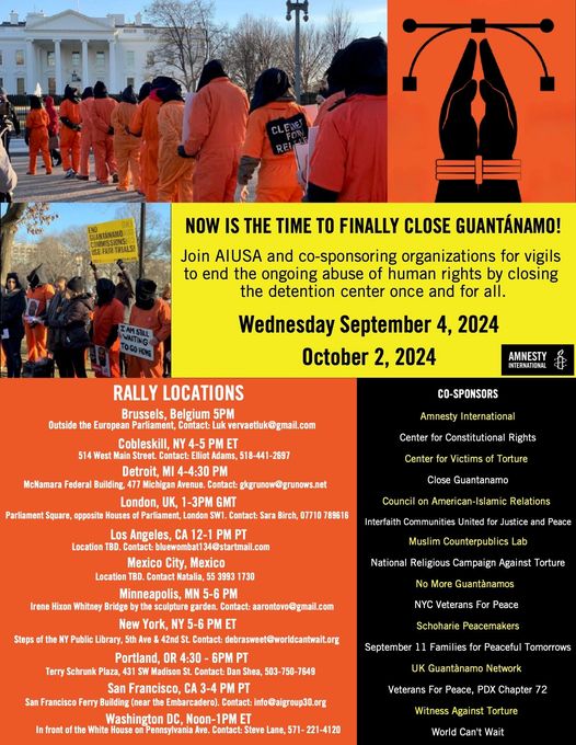 Miércoles 4 de septiembre: Vigilia mundial para cerrar Guantánamo NOW Londres - Nueva York - Ciudad de