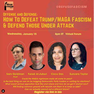 Ofensiva y defensa: cómo derrotar al fascismo de Trump/MAGA y defender a los atacados Miércoles 15 de enero 8:00 pm
