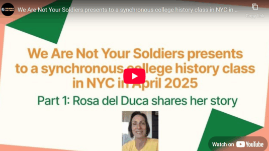al que nos somete el ejército. El sitio web de We Are Not Your Soldiers incluye