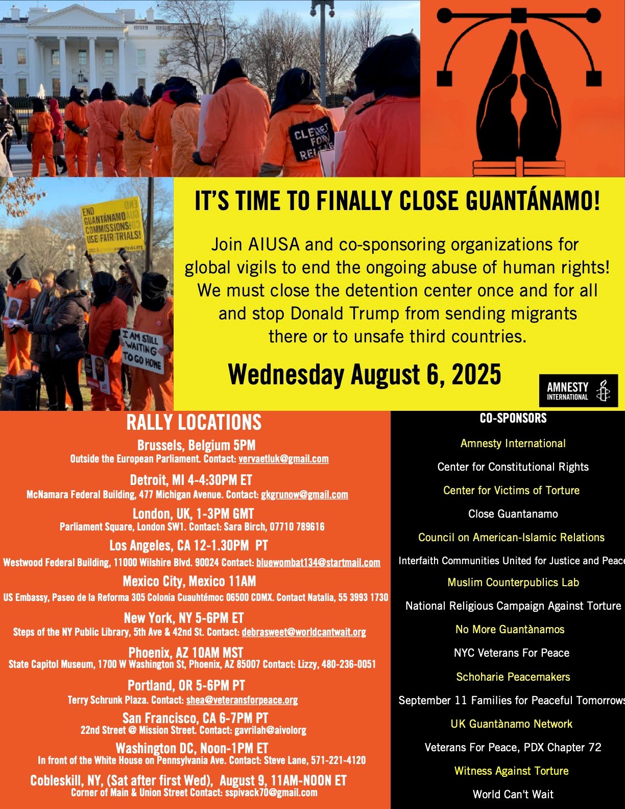 agosto + ¡Detén la deportación de personas allí o en cualesquiera otro sitios de tortura!