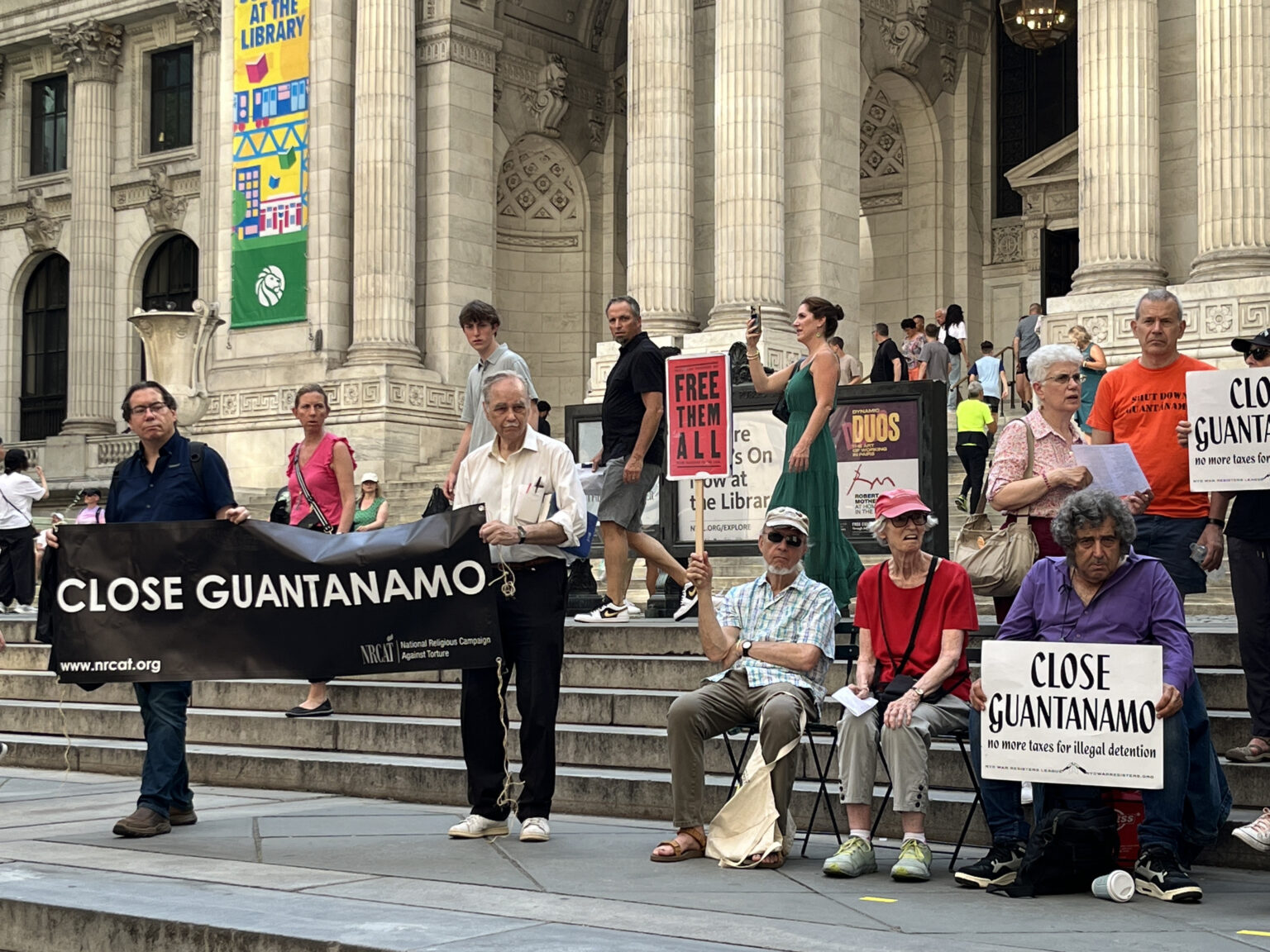 Aquí están algunos de nosotros en Nueva York en nuestra vigilia de junio frente a la biblioteca