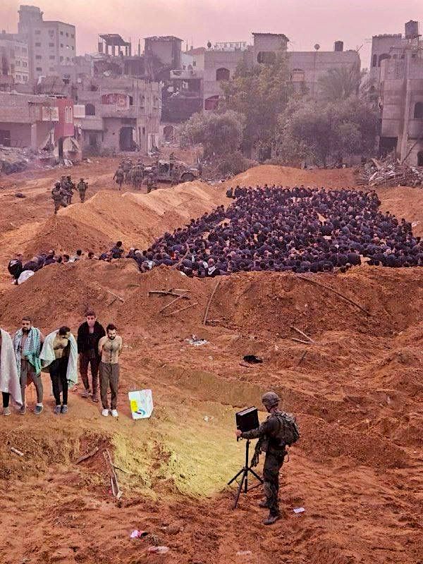 el norte de Gaza, desnudados y trasladados en vehículos a un lugar no revelado,