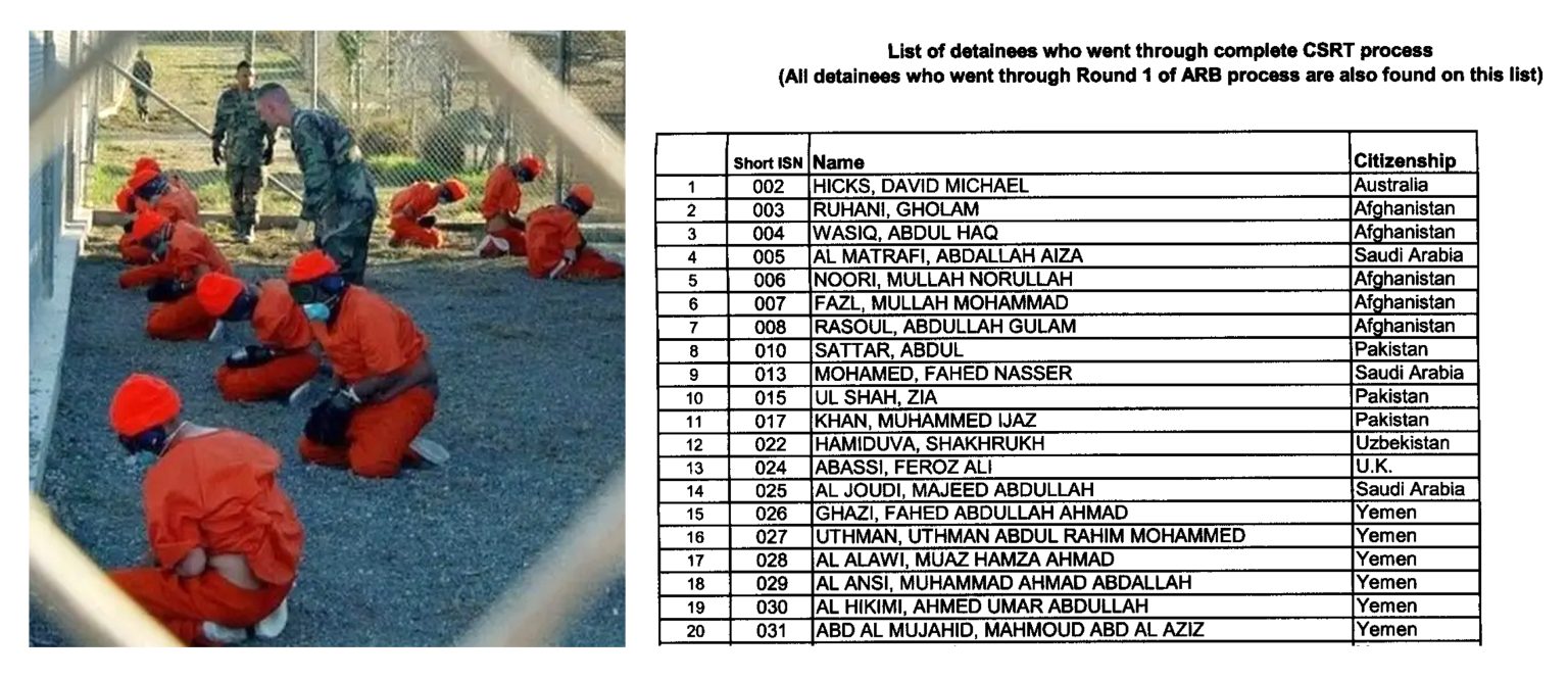 Era la primera lista de prisioneros publicada por el gobierno de EE.UU., el cual, durante cuatro años y