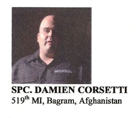 Corsetti llegó a Afganistán el 29 de julio de 2002. Era soldado de inteligencia militar, no