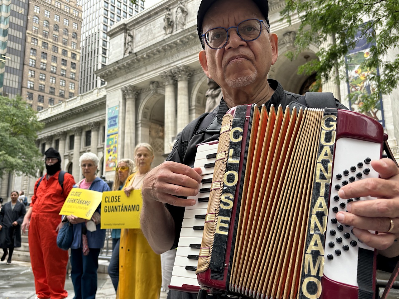 El acordeón más guay del mundo en la vigilia de Nueva York.