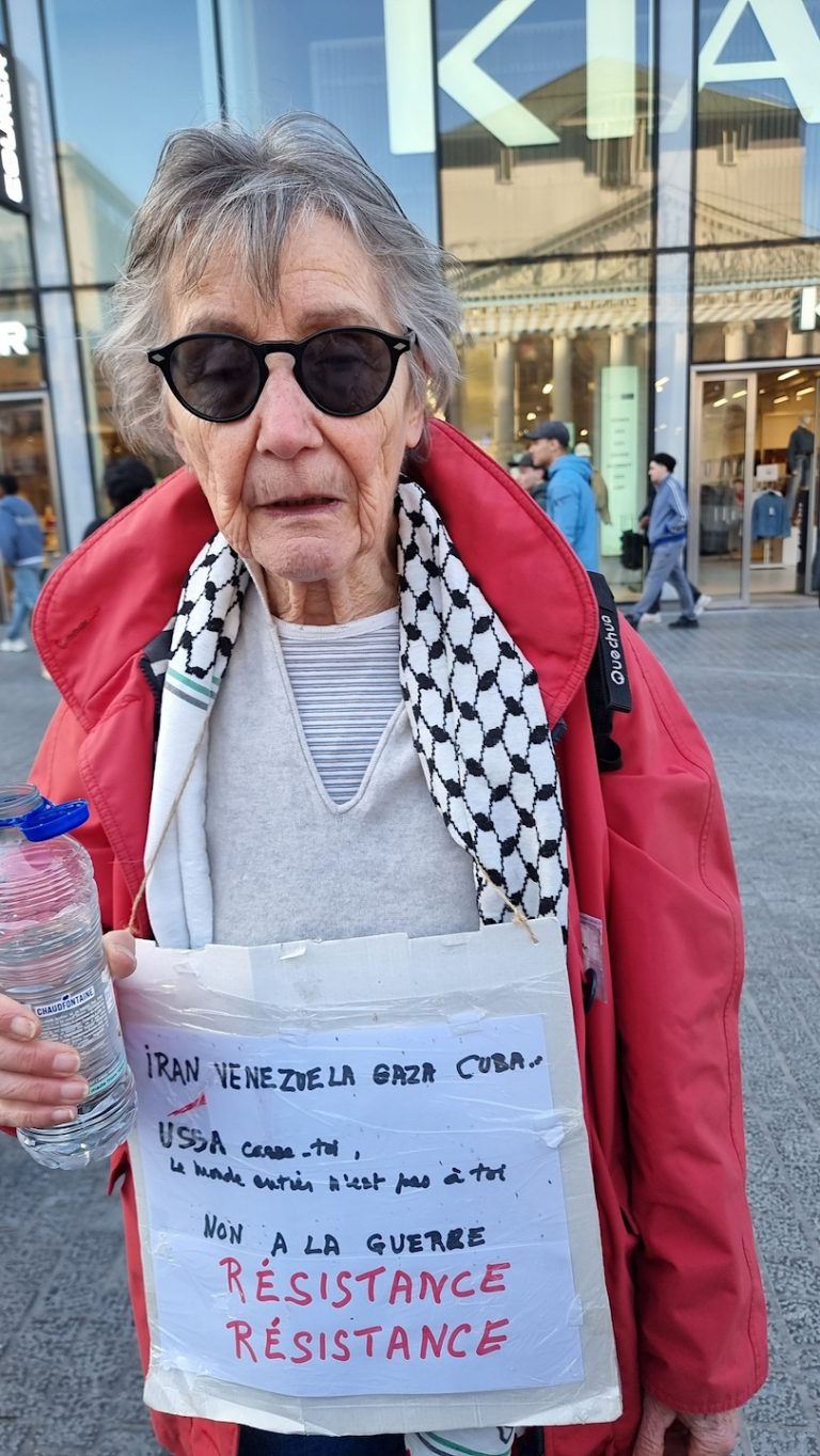 solidarios. La foto la tomó un activista pro Palestina, con una bandera, que