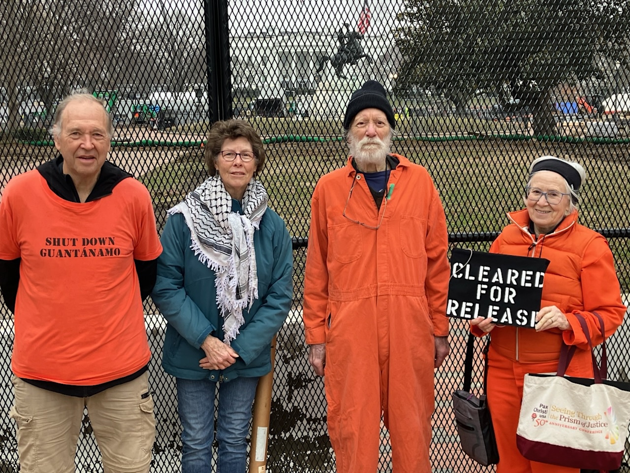 Activistas frente a la Casa Blanca en Washington D. C. el 4 de marzo de 2026. Helen Schietinger, de Witness Against Torture,