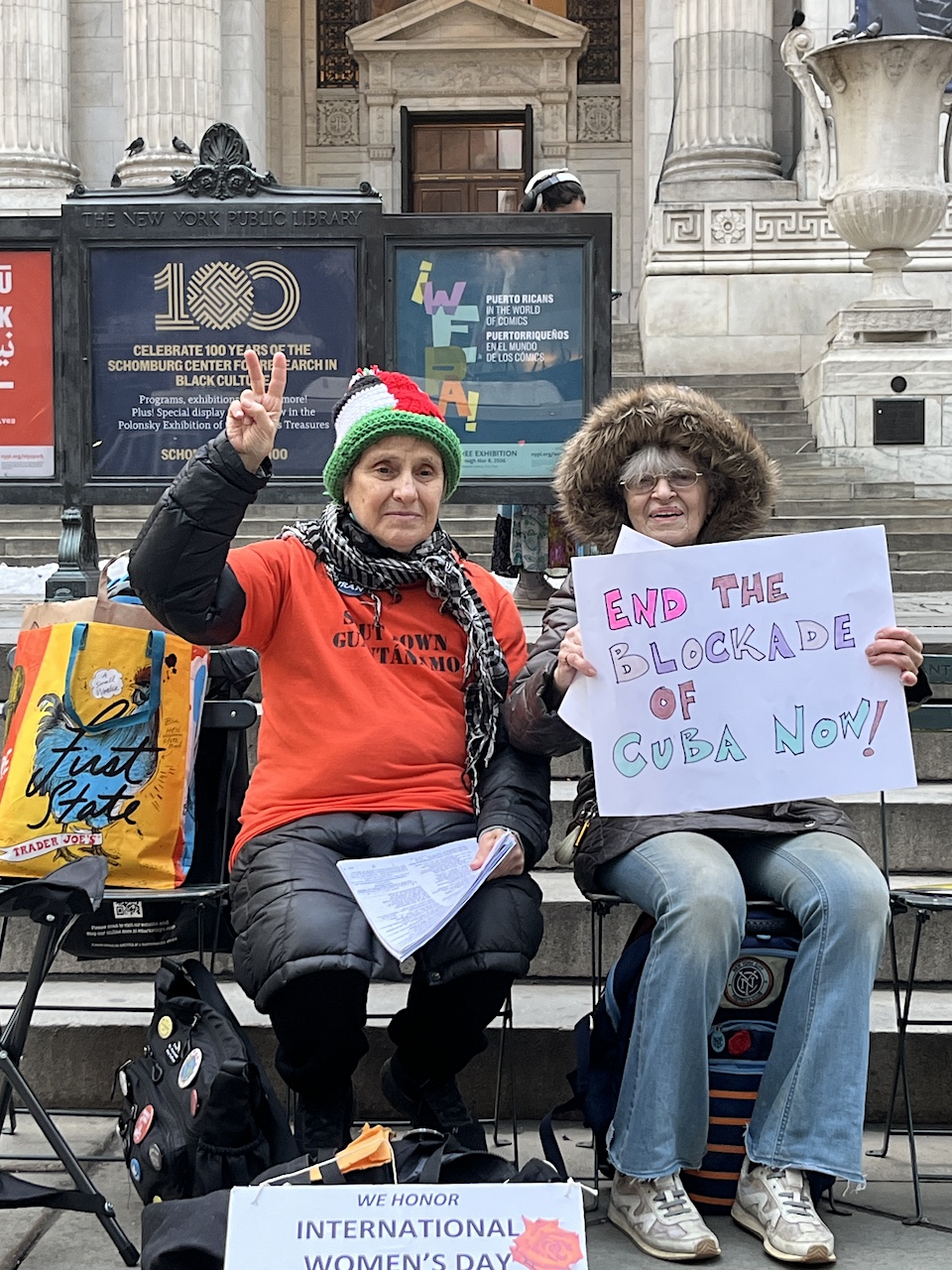 Debra Sweet, directora nacional de World Can’t Wait, en la vigilia de Nueva York junto a Alice Sturm