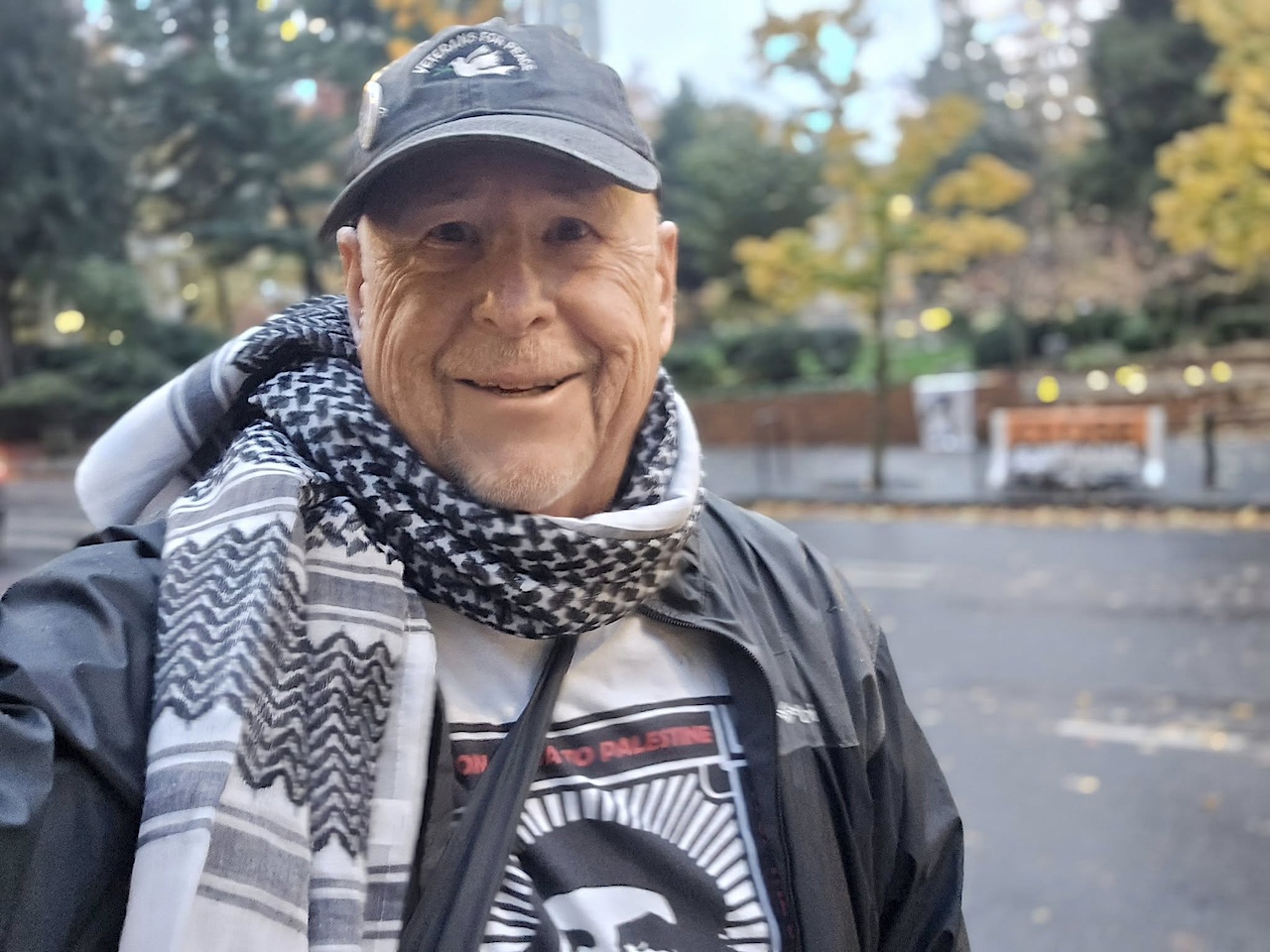 El organizador Dan Shea, de Veteranos por la Paz, en la vigilia celebrada en Portland, Oregón. Las fotos de