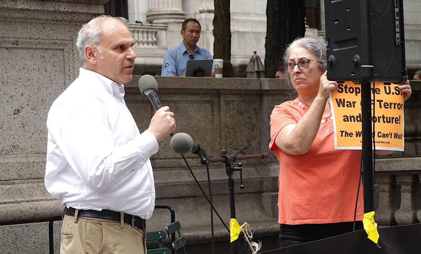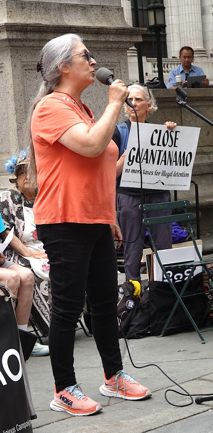 Debra Sweet habla en la vigilia de Nueva York. (Foto: Felton Davis).