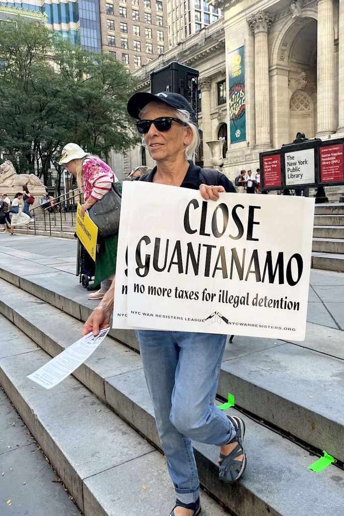 York el 13 de septiembre de 2023, con una gran pancarta de la the War Resisters League.