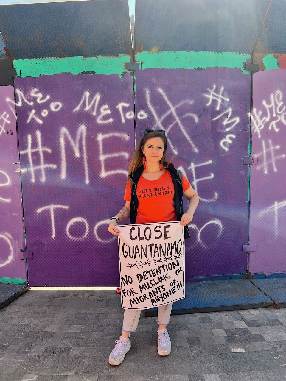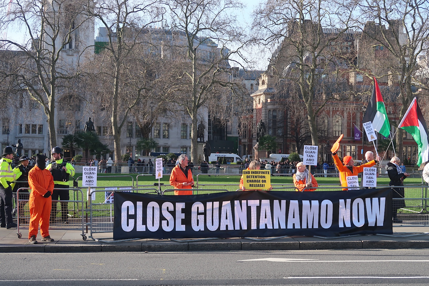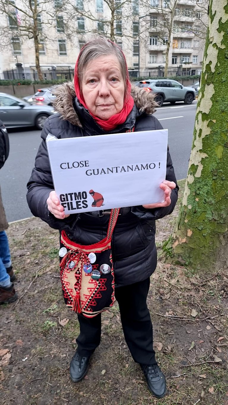 Otra foto de la vigilia de Londres, en la que aparece Sara Birch, coorganizadora de la UK Guantánamo Network.