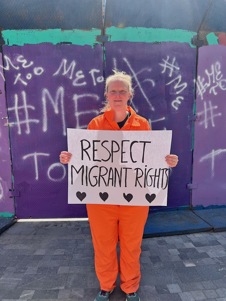 reconfortante ver la pancarta "La migración no es un crimen; separar a las