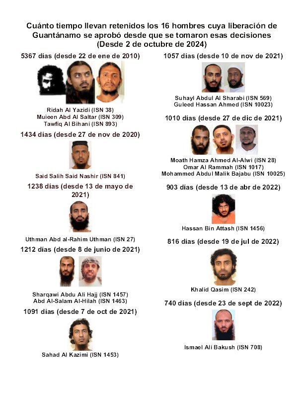 cuya liberación de Guantánamo ha sido aprobada, en el que se muestra el tiempo