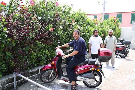 Otra foto exclusiva facilitada por Rushan Abbas. Khalil Manut se familiariza con un ciclomotor.