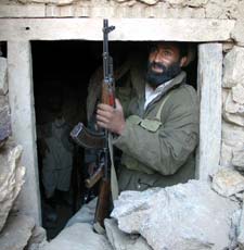 Un soldado afgano sentado en la entrada de una de las cuevas de Tora Bora en diciembre de 2001.