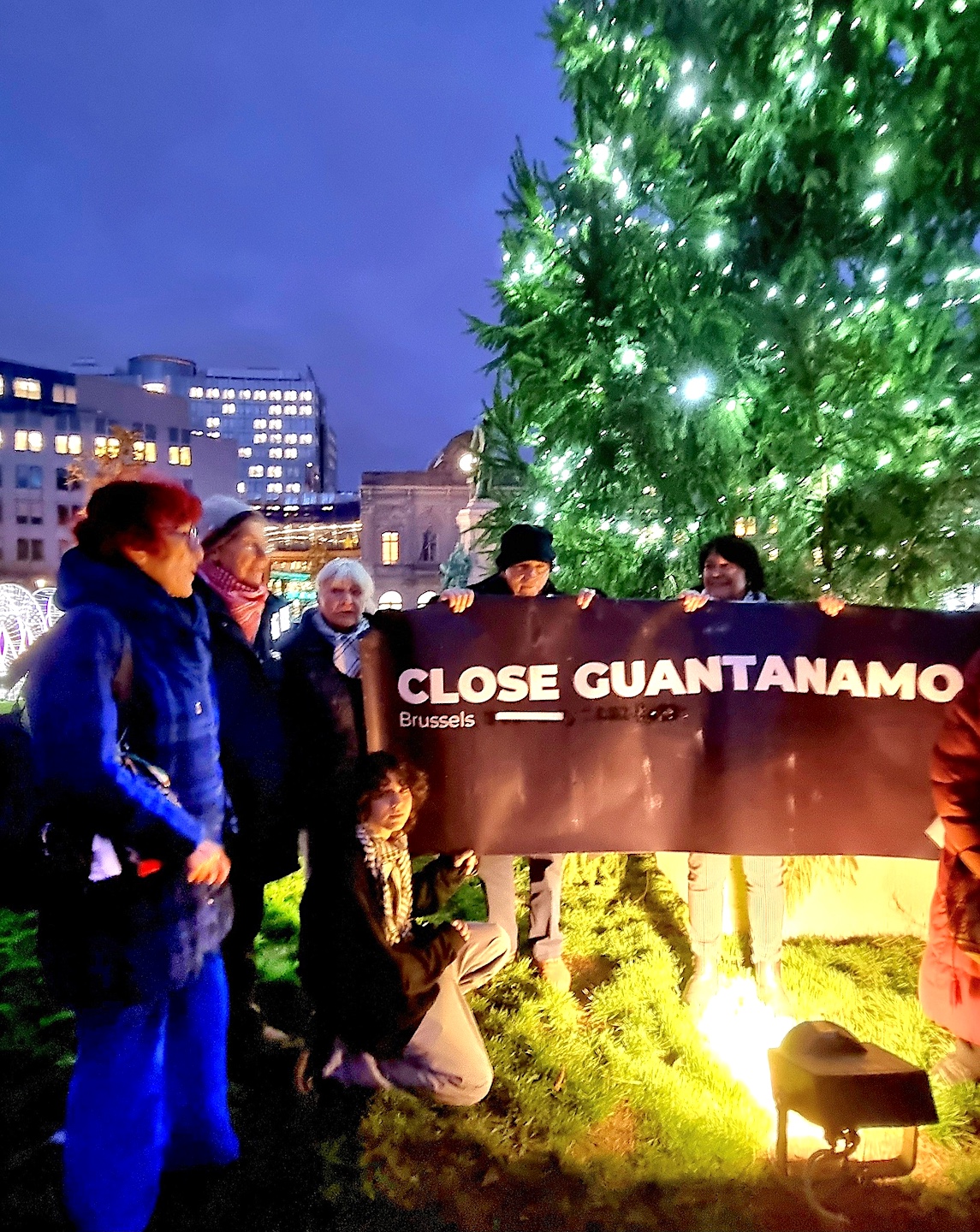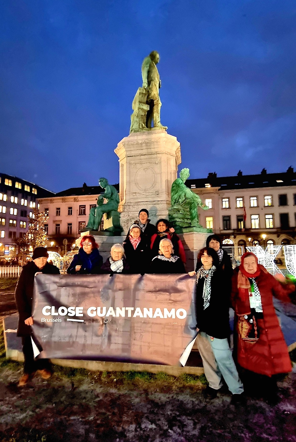 La pancarta “Cerrar Guantánamo” en Bruselas.