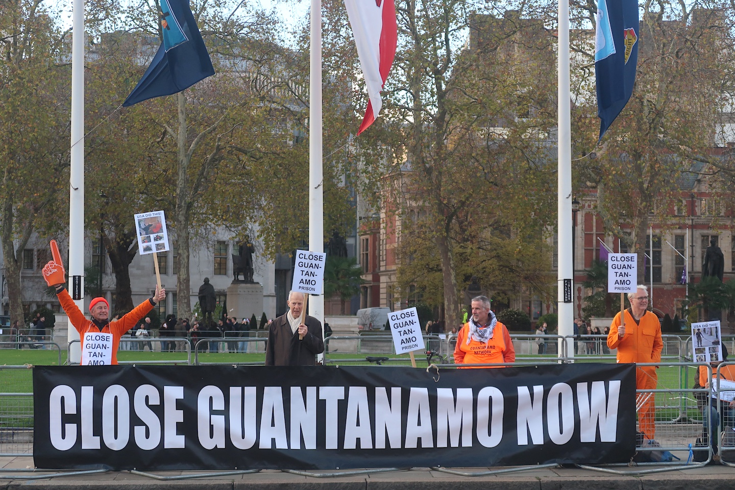 Activistas de la UK Guantánamo Network en Parliament Square, frente al Parlamento de Londres,