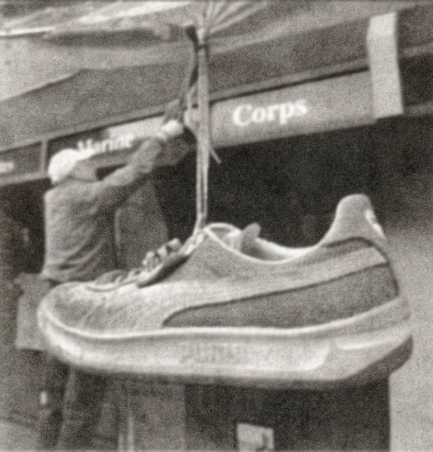 botarga de Bush con ropa de presidiario. Además, un Monumento al Zapato fue